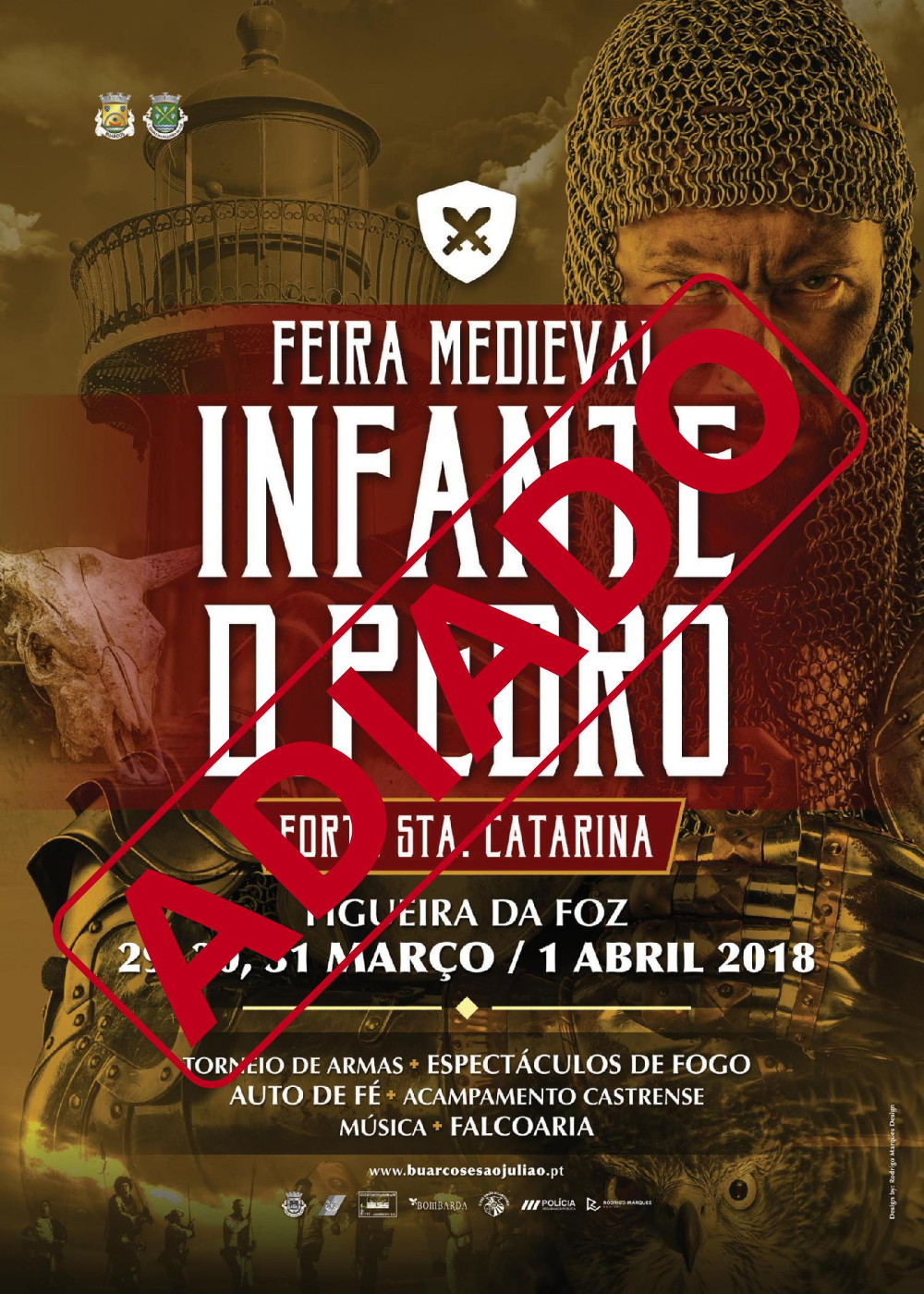 A Junta de Freguesia de Buarcos e São Julião vem por este meio informar que a Feira Medieval Infante D. Pedro 2018 foi adiada para os próximos dias 28, 29, 30 de Abril e 1 de Maio, devido aos danos causados nas estruturas da Feira Medieval na madrugada do passado Sábado e porque se prevê a continuidade de mau tempo com vento e chuva durante a semana.