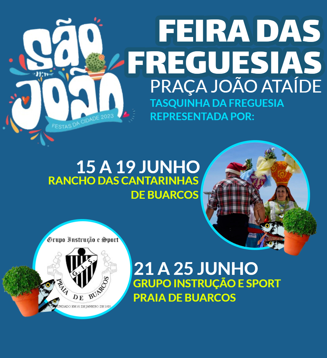 A tasquinha da freguesia vai ser representada pelo Rancho das Cantarinhas de Buarcos e pelo Grupo Instrução e Sport - Praia de Buarcos.