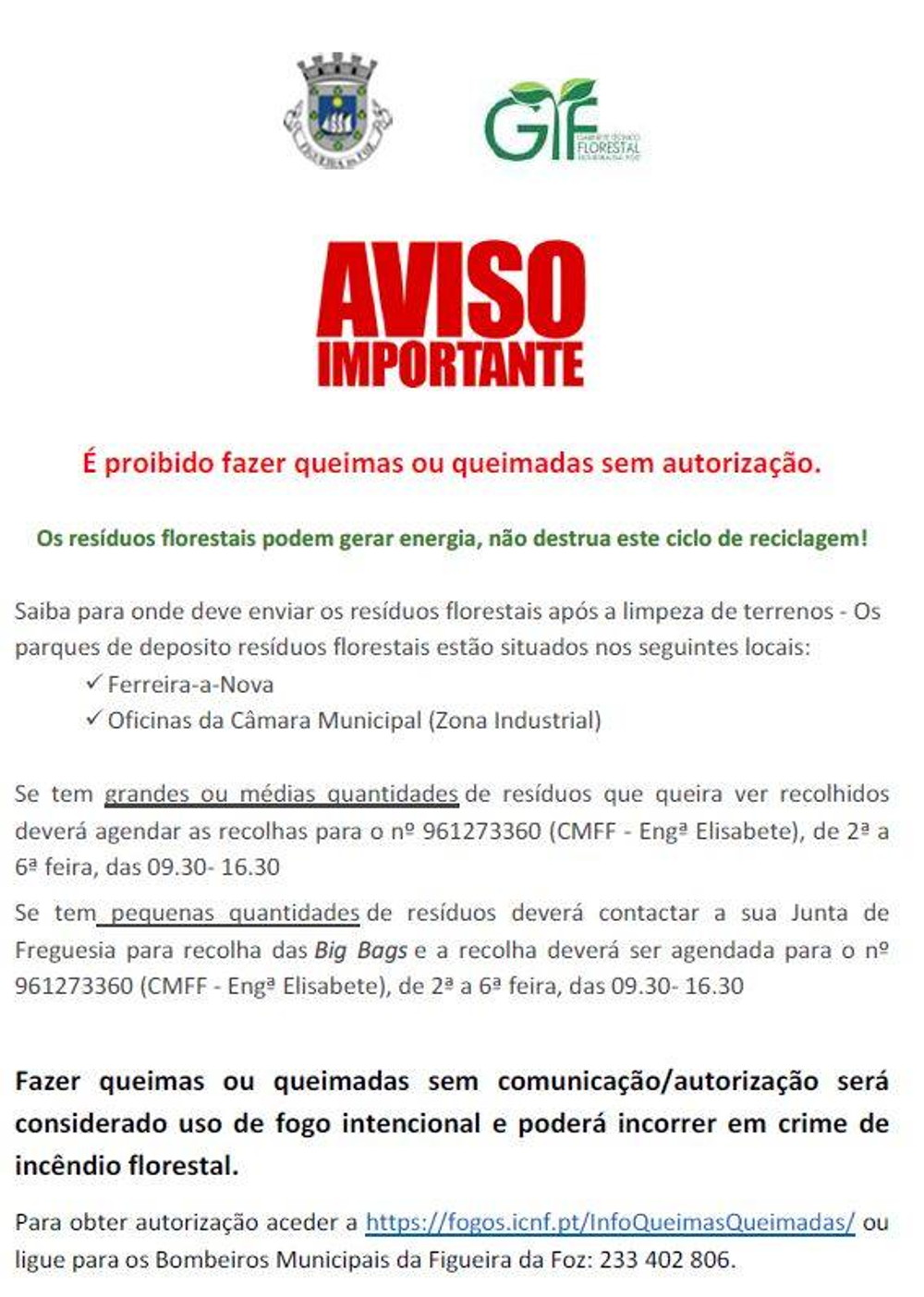 O contacto telefónico foi alterado, sendo o contacto corrente específico para as queimas e queimadas.