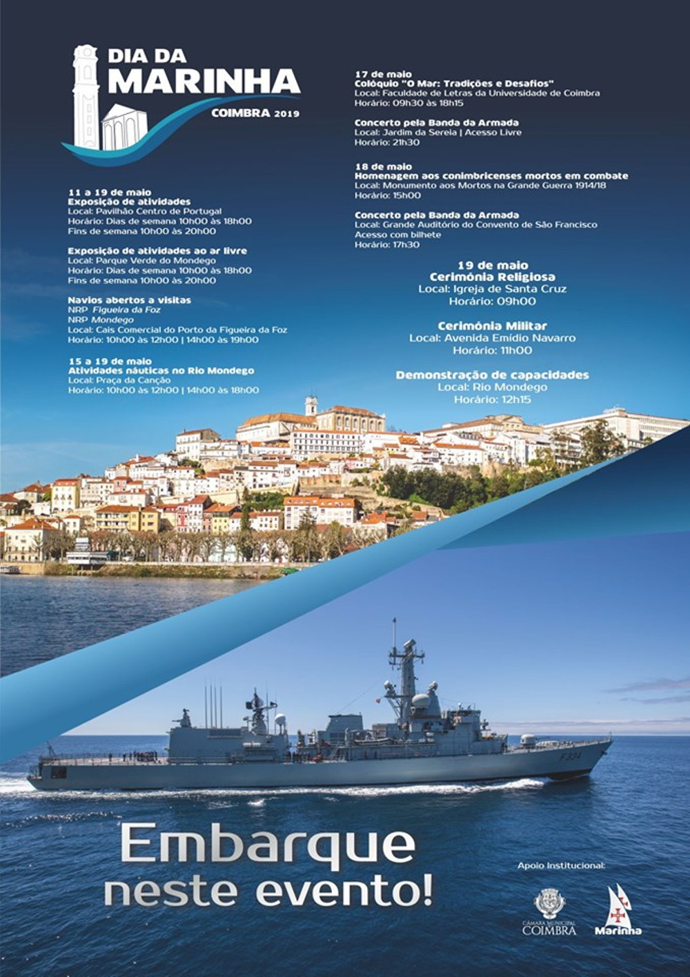 As comemorações do Dia da Marinha decorrem este ano na cidade de Coimbra, com um vasto programa de atividades, na sua maioria direcionadas a jovens e famílias.