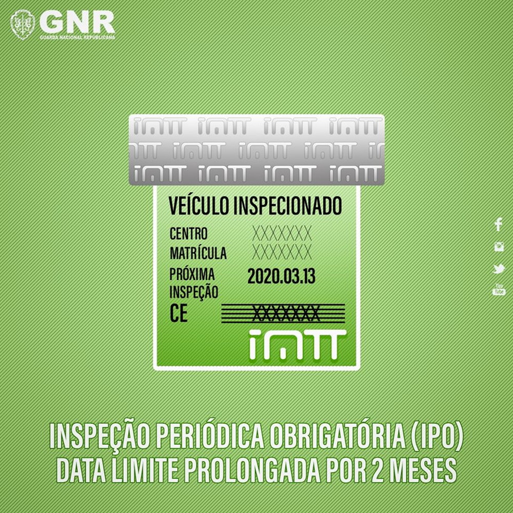 No âmbito das medidas excecionais de resposta à COVID19 os veículos a motor e seus reboques, ligeiros ou pesados, que devessem ser apresentados à inspeção periódica no período entre 13 de março e 31 de maio de 2020, veem o seu prazo prolongado por dois meses contados da data da matrícula.