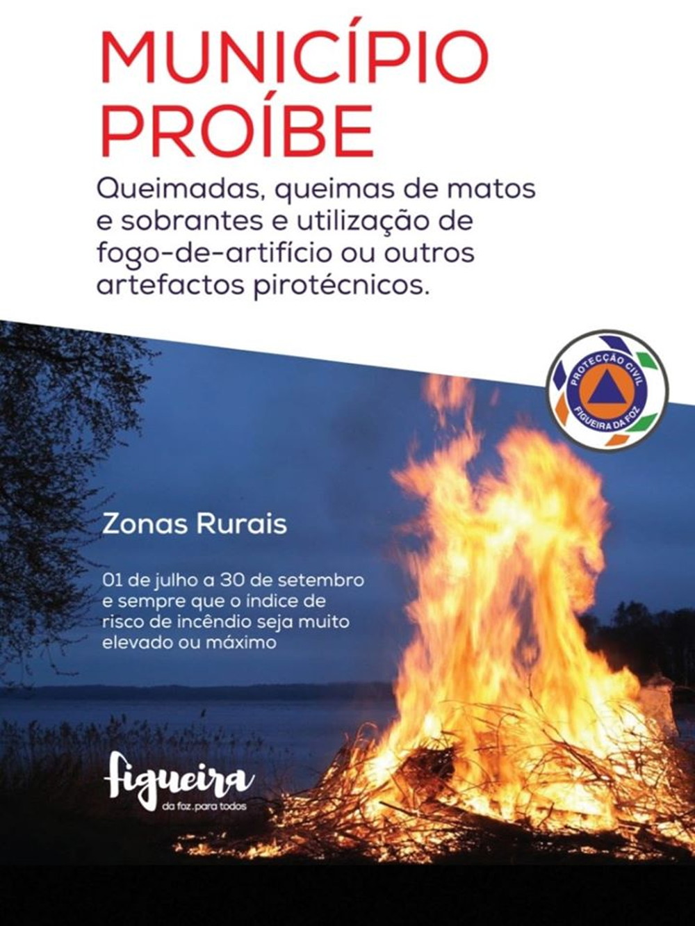 O Município da Figueira da Foz aprovou por unanimidade, na reunião de câmara da passada segunda-feira, 15 de junho de 2020, a proposta de indeferimento de pedidos de autorização de realização de queimadas, queimas de matos cortados e amontoados e qualquer tipo de sobrantes de exploração, bem como pedidos de utilização de fogo-de-artifício ou outros artefactos pirotécnicos em espaços rurais do concelho, durante o período crítico – 01 de julho a 30 de setembro, e sempre que o índice de risco de incêndio seja muito elevado ou máximo.