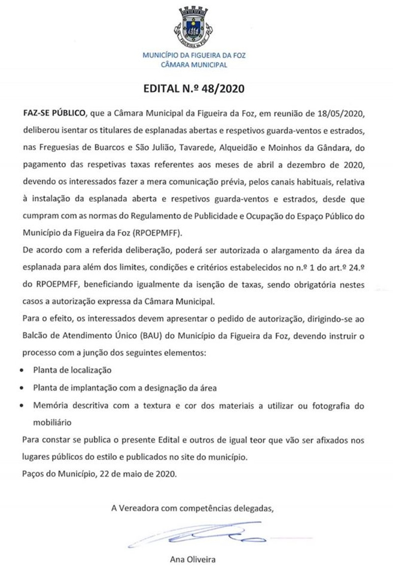 A Câmara Municipal da Figueira da Foz informa sobre isenção de taxas aos titulares de esplanadas abertas e respetivos guarda-ventos e estrados.