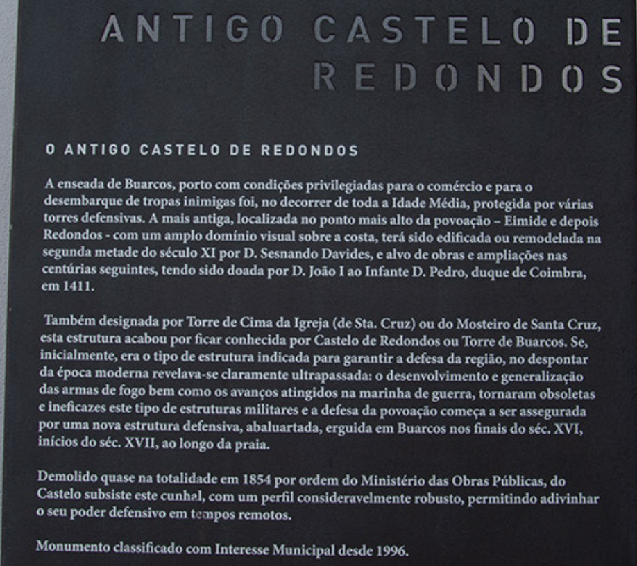 O Castelo de Redondos encontra-se classificado como Imóvel de Interesse Municipal, integrando o património histórico da freguesia de Buarcos.